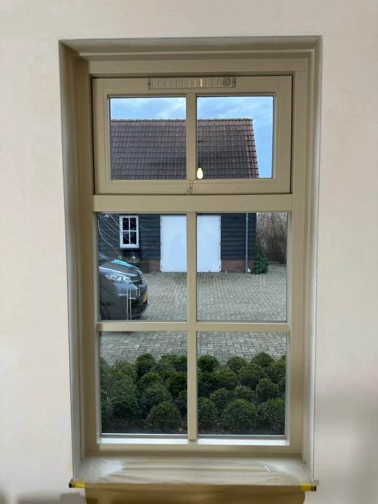 Goed buitenschilderwerk in Groesbeek begint bij de basis. We controleren verbindingen, glasafdichting en kitnaden, ronden scherpe kanten waar nodig licht af (voor betere laagopbouw) en kiezen per gevel een passend systeem. Zuid- en westgevels vragen vaak net iets robuustere aflak; beschutte zijden kunnen lichter. Zo blijven kozijnen en deuren beschermd tegen UV, wind en regen, met een laklaag die kleur en glans behoudt.